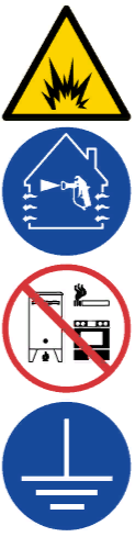 • Устраните все возможные источники возгорания, такие как сигнальные лампы, сигареты, переносные электролампы и синтетическую спецодежду (потенциальная опасность статического разряда).